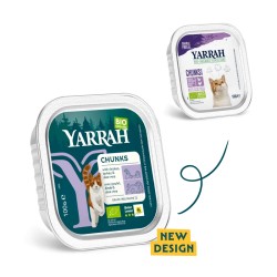 Pâtée bio sans céréales Yarrah au poulet, dinde et aloe vera. Aliment complet et digeste pour chats adultes, sans OGM, sans additifs. Recette certifiée biologique.